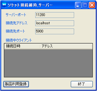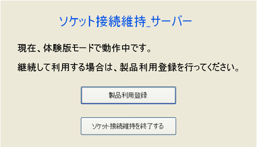 「ソケット接続維持サーバー」の「製品利用登録」ボタンを押すと、製品利用登録画面が開きます。