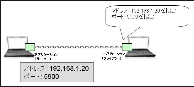 「接続先アプリケーションのポート」「ソケット接続維持_サーバーのアドレス」は、以下の例の用に設定します。